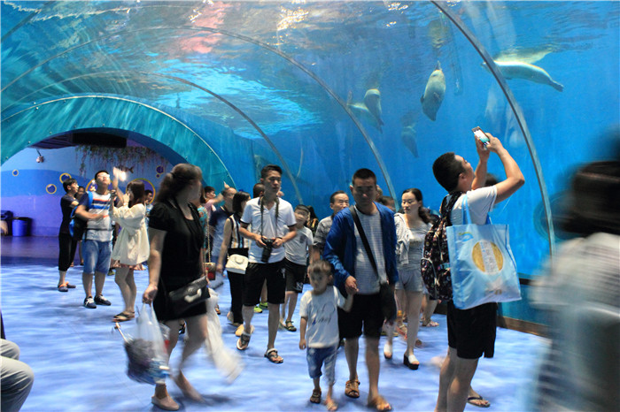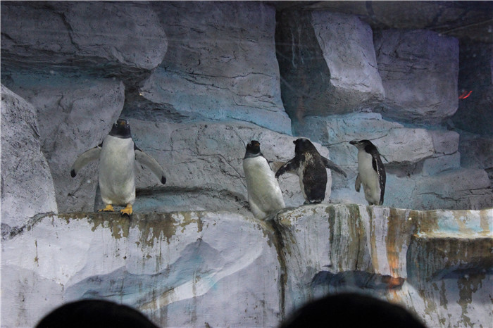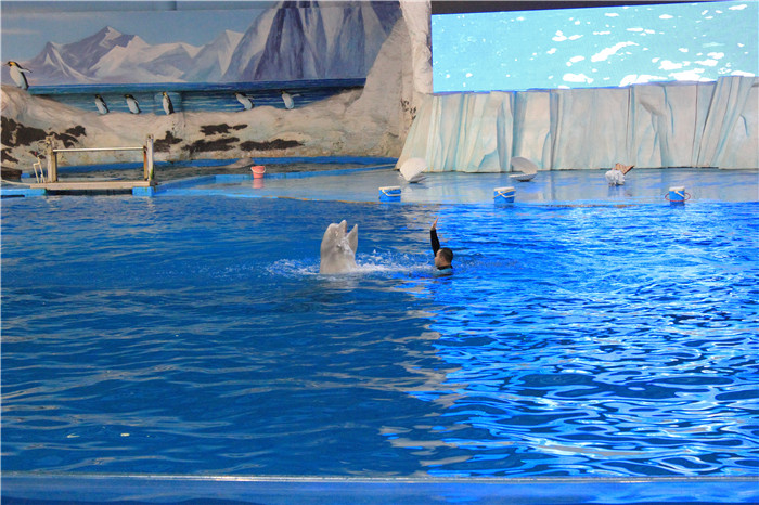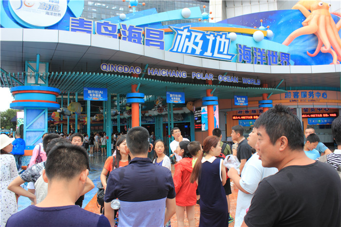 第二天,清晨,伴著陣雨,我們?nèi)コ栽绮?,青島的團餐確實不敢恭維,不過物價在這里。吃過早飯,8點鐘我們到了青島極地海洋世界,青島極地海洋世界是 “海昌集團” 在青島投資興建的一個包含海洋動物展示,極地動 物展示,海洋極地動物 表演以 及海洋科技館,漁人碼頭 等為主題的綜合性 海洋主題公園。整個項目占地14萬平方米,包含:海洋極地館、海洋科技館、海洋娛樂大道、漁人碼頭等項目。我們跟著導游集體入場,小孩子還是比較興奮的,浪漫的白鯨、兇悍的北極熊、溫順的企鵝、靈巧的海獺、龐大的北海獅、北極狼、北極狐、五彩斑斕的海洋魚類、神秘的愛斯基摩人、純木制的極地雪橇、巧奪天工的北極雪屋,從不同角度展現(xiàn)了兩極地區(qū)的風土人情和自然風貌,讓大家體驗冰雪極地生活的美妙感覺。極地海洋館單向觀賞不可逆行,最后來到了海洋動物表演場,觀賞到白鯨、海豚、海獅等海洋動物明星傾力奉獻的表演,感受人與自然的融合,人與動物的和諧。