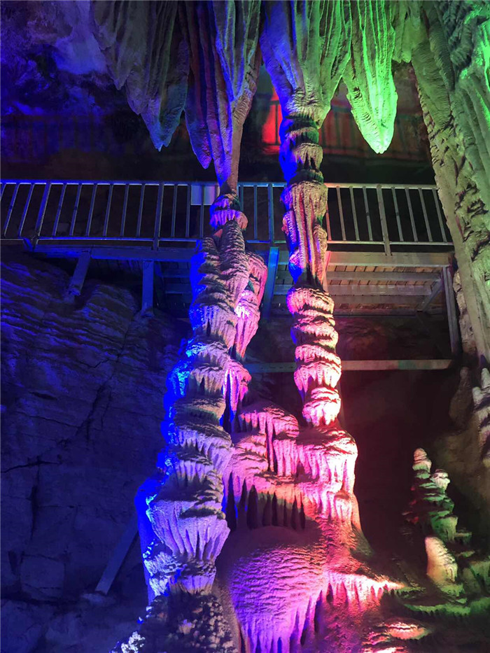 這里還有亞洲最長(zhǎng)的暗河漂流,坐上皮筏,順流而下,水道蜿蜒曲折,伴著燈光的明暗和色彩變幻,令人沉醉其中、目不暇接。不禁感嘆大自然的鬼斧神工和無(wú)窮造化。