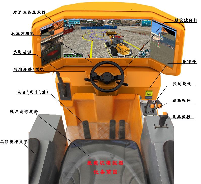 2094-2011)開發(fā)而成的新產(chǎn)品,該系統(tǒng)配備IC卡考核管理系統(tǒng)對(duì)培訓(xùn)學(xué)員進(jìn)行教學(xué)考核,駕駛座艙進(jìn)行了大量技術(shù)創(chuàng)新和改進(jìn),并配置了“裝載機(jī)模擬軟件9.5”協(xié)同作業(yè)版,該軟件提供裝載機(jī)各種作業(yè)訓(xùn)練課題,同時(shí)可以實(shí)現(xiàn)挖掘機(jī)、裝載機(jī)、推土機(jī)、自卸卡車同一場(chǎng)景協(xié)同作業(yè),課題豐富、逼真的各種操作課題及功能,是一種機(jī)械工程專業(yè)的教學(xué)設(shè)備。