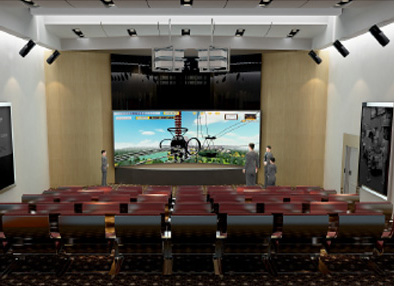 雙通道環(huán)幕立體仿真培訓教室由教員臺控制系統(tǒng)、三維成像視景系統(tǒng)、環(huán)繞立體音響系統(tǒng)、教學投影系統(tǒng)、網(wǎng)絡通訊系統(tǒng)等模塊組成。