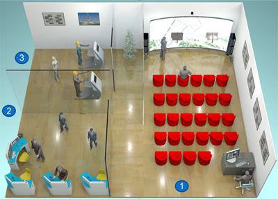 立體培訓教室將音、視頻和交互式程序通過3D立體影像的表現(xiàn)形式,對學員們進行操作步驟和作業(yè)方法的詳細講解。這種結合書書與實踐的直觀培訓方式,使學員對培訓內(nèi)容快速理解和掌握,并在培訓中能針對學員的錯誤點在大屏幕上對所有學員進行糾正和說明。