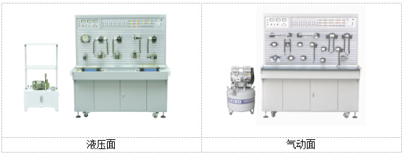 液壓與氣壓傳動PLC控制綜合實訓(xùn)裝置采用“二合一”結(jié)構(gòu),配備兩套實驗設(shè)備,一套為氣動與PLC實訓(xùn)平臺,另一套為液壓傳動與PLC實訓(xùn)平臺,且各自配有獨立的PLC電氣控制設(shè)備。
