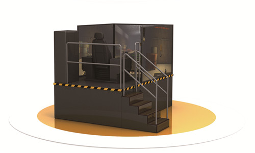 駕駛室系統(tǒng)采用真實的操作臺,包括一套完整的操作臺(內(nèi)含各種操作手柄、開關(guān)、功能按鈕、護(hù)欄、以及司機(jī)座椅等),其原來的玻璃窗口用視景系統(tǒng)的投影屏幕替代,通過“窗口”可以看到從高性能投影儀投放在屏幕上的視景景象和操作情況。音響系統(tǒng)可以產(chǎn)生實際作業(yè)中的各種聲音(如電動機(jī)起、制動,大、小車運(yùn)行,貨物撞擊,車間環(huán)境聲音等等)以及各種現(xiàn)場聲響。
