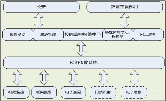 利用現(xiàn)代信息技術(shù),實現(xiàn)對校園的基礎(chǔ)設(shè)施和日常管理應(yīng)用進(jìn)行統(tǒng)一規(guī)劃、設(shè)計、建設(shè)和運(yùn)營,從校園的通信網(wǎng)絡(luò)、安全防范、日常辦公、信息安全、能源資產(chǎn)管理等方面實現(xiàn)對校園管理的服務(wù)支撐。
