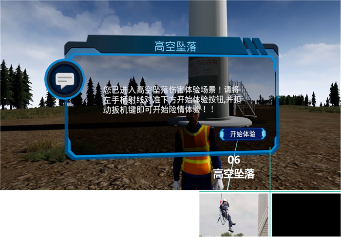VR電力施工安全培訓(xùn)體驗(yàn)系統(tǒng)結(jié)合VR硬件,把以往的“說教式”教育轉(zhuǎn)變?yōu)橛H身“體驗(yàn)式”教育,由傳統(tǒng)的“讀規(guī)章制度、看事故視頻、簽名”老三樣改為把施工現(xiàn)場安全施工形式以VR模擬出來,體現(xiàn)了企業(yè)以人為本、安全發(fā)展的理念,讓施工從業(yè)人員親身感受違規(guī)操作帶來的危害,強(qiáng)化安全防范意識(shí),熟練掌握部分安全操作技能。