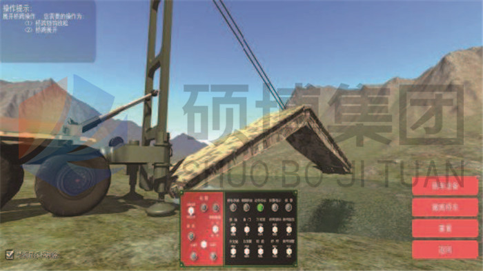 重型機(jī)械化橋模擬訓(xùn)練考核系統(tǒng)是以定型的某型橋梁裝備為原型,依據(jù)《中國(guó)人民解放軍工程兵裝備訓(xùn)練大綱》要求研制開發(fā)。采用軟、硬件相結(jié)合的方式,基本還原重型機(jī)械化橋在操作過程中的操作要點(diǎn)和步驟。模擬操作盒操縱裝置與原型重型機(jī)械化橋?qū)嵮b操縱裝置位置、功能、手感、動(dòng)感基本一致,采用合理的通信方式,配合模擬訓(xùn)練器材,通過計(jì)算機(jī)模擬仿真的方法,模擬搭建真實(shí)的重型機(jī)械化橋操作環(huán)境,構(gòu)建接近實(shí)戰(zhàn)的虛擬作訓(xùn)空間,支持裝備多種方式的架設(shè)和撤收訓(xùn)練,可以降低訓(xùn)練成本,提高訓(xùn)練的針對(duì)性、實(shí)戰(zhàn)化水平。同時(shí)模擬訓(xùn)練器軟件系統(tǒng)和半實(shí)物硬件均支持二次開發(fā),可滿足各單位的定制化需求。